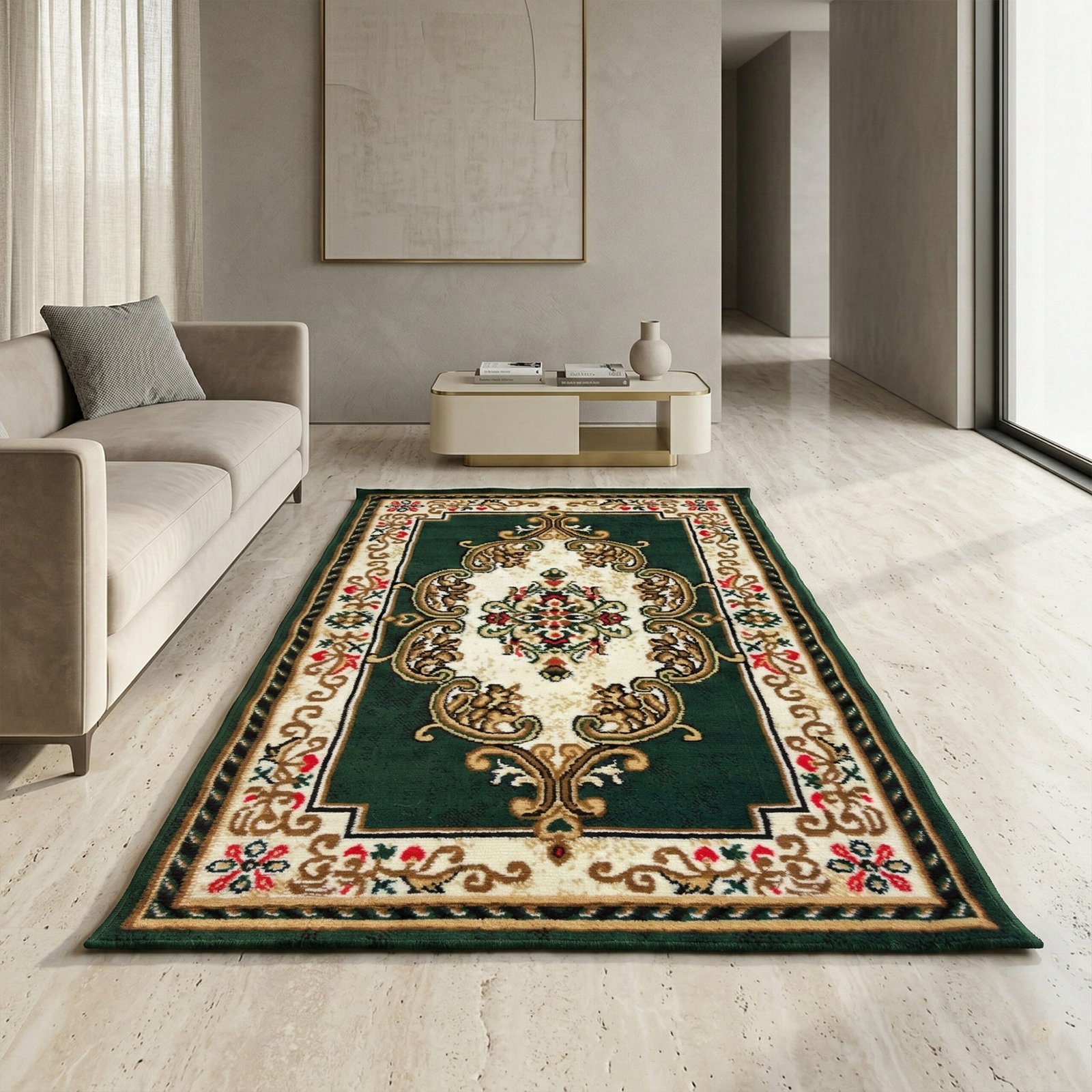 Luxury Turkish Design Carpet ( 3 x 5 Feet ) Green